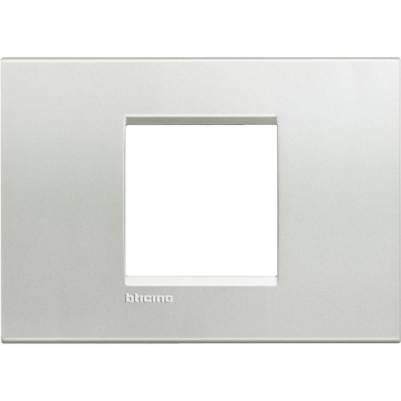 Description: LivingLight - installation de boîte d'encastrement italienne - plaque large recatangle - 2 modules - argent