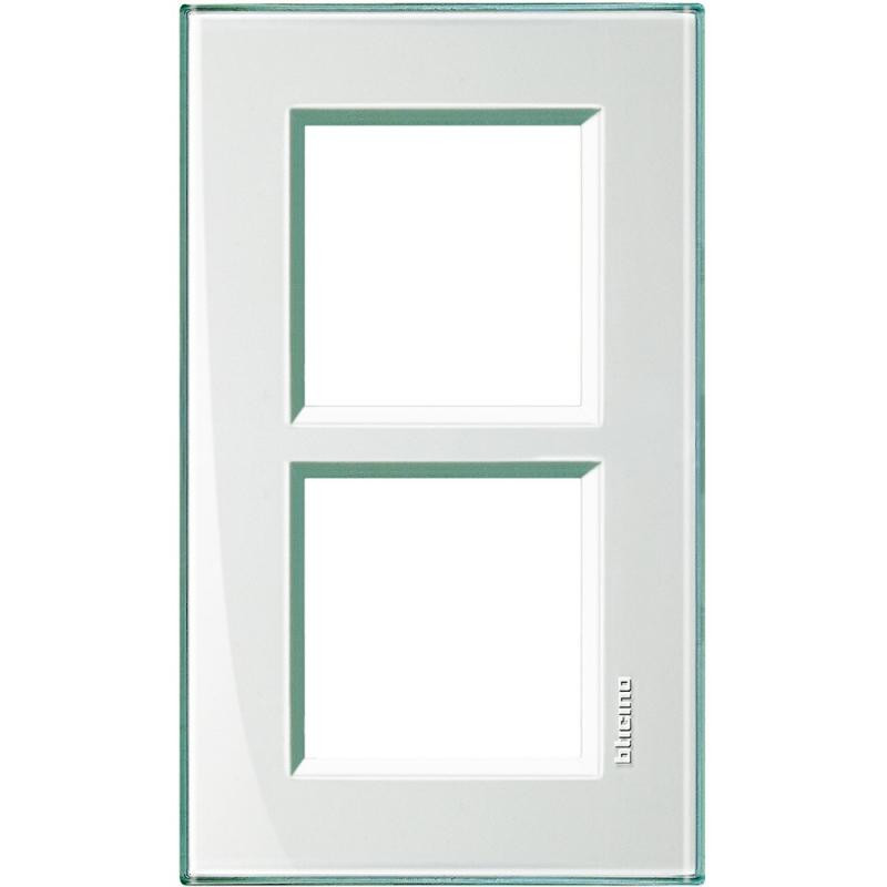 Description: LivingLight - installation de boîte d'encastrement belge - plaque rectangulaire - 2x2 modules - entraxe 57mm - aquamarine