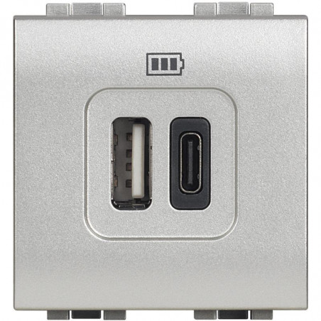 Emballage: 1 - 1 - 120 Marque: BticinoRéférence: NT4287C2EAN: 8005543622186Description: Livinglight chargeur USB type A+C-3A- 2 modules tech