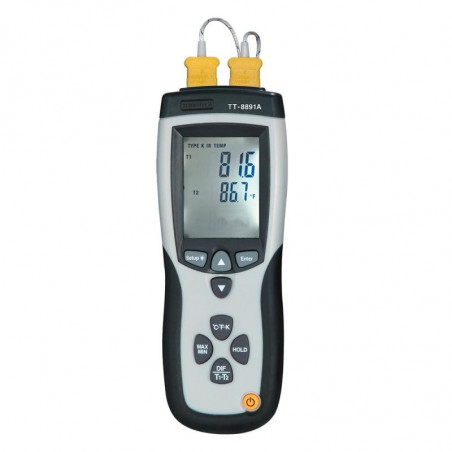 Emballage: 1Marque: TurbotechRéférence: TT8891AEAN: 6951110988891Description: Thermomètre 2 canaux -200°C+1372°C