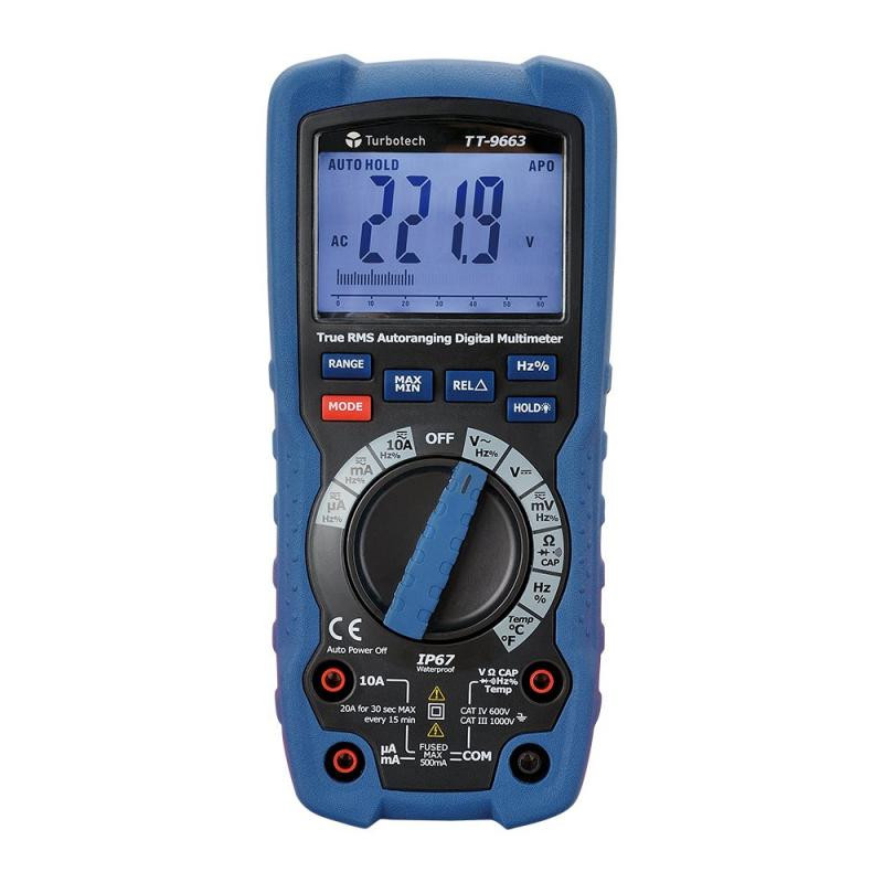 Emballage: 1Marque: TurbotechRéférence: TT9664EAN: 6951110996643Description: Multimetre pro 1000V/10A TRMS 600V -40000PTS