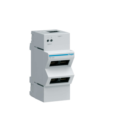 Emballage: 1 - 1 - 60 - 1440 Marque: HagerRéférence: TN131EAN: 3250615941312Description: Répartiteur téléphonique 4 uitgangen