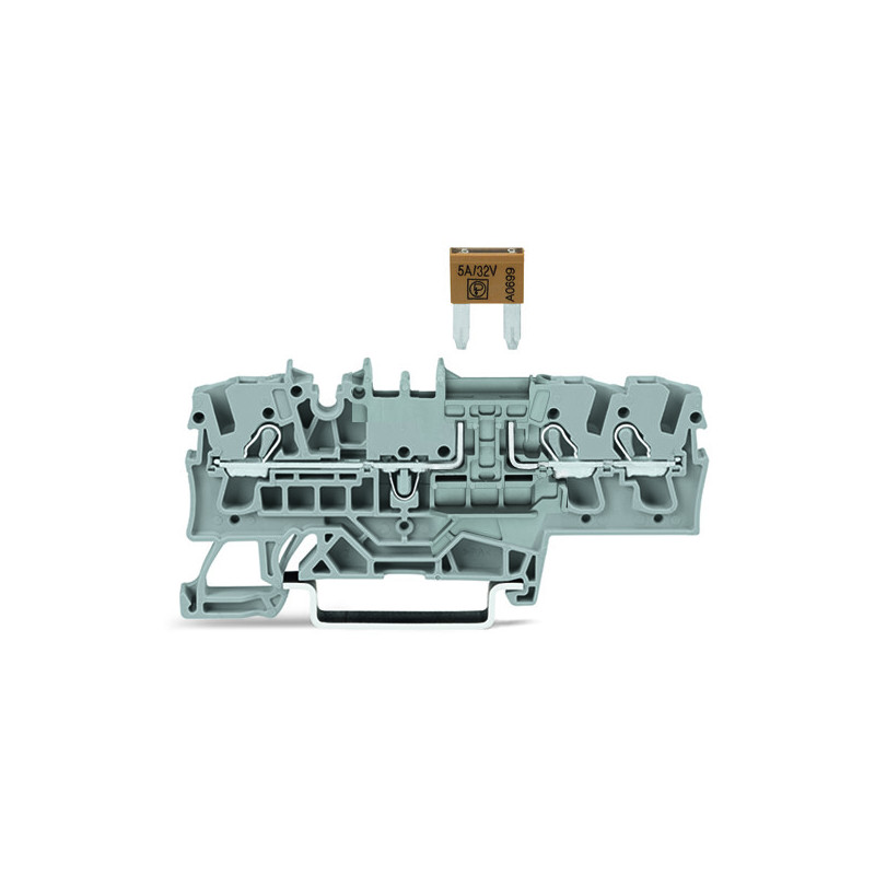 BORNE À FUSIBLE POUR 3 CONDUCTEURS pour fusibles plats mini automobile selon DIN 7258-3f, ISO 8820-3, gris