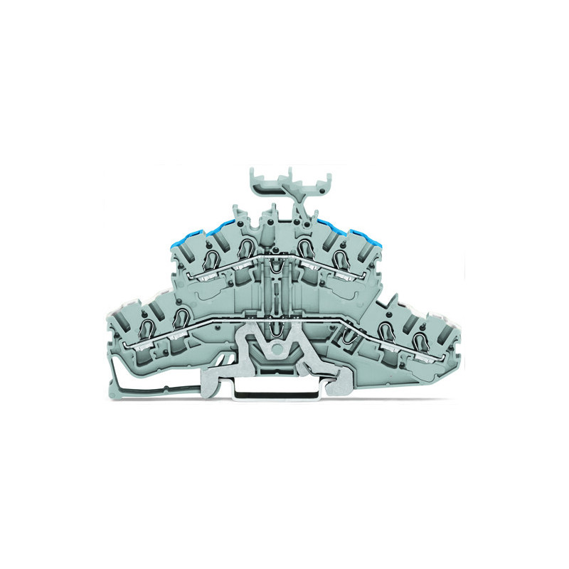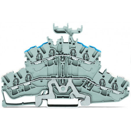Emballage: 50 Marque: Wago Référence: 2002-2418 EAN: 4045454752422 Description: Borne à deux étages pour 4 conducteu Borne de raccordement de tresse de b, gris
