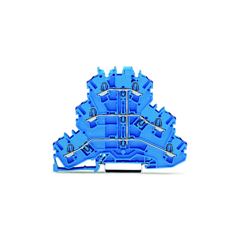Borne à trois étages Borne de passage pour 6 conducteurs, bleu