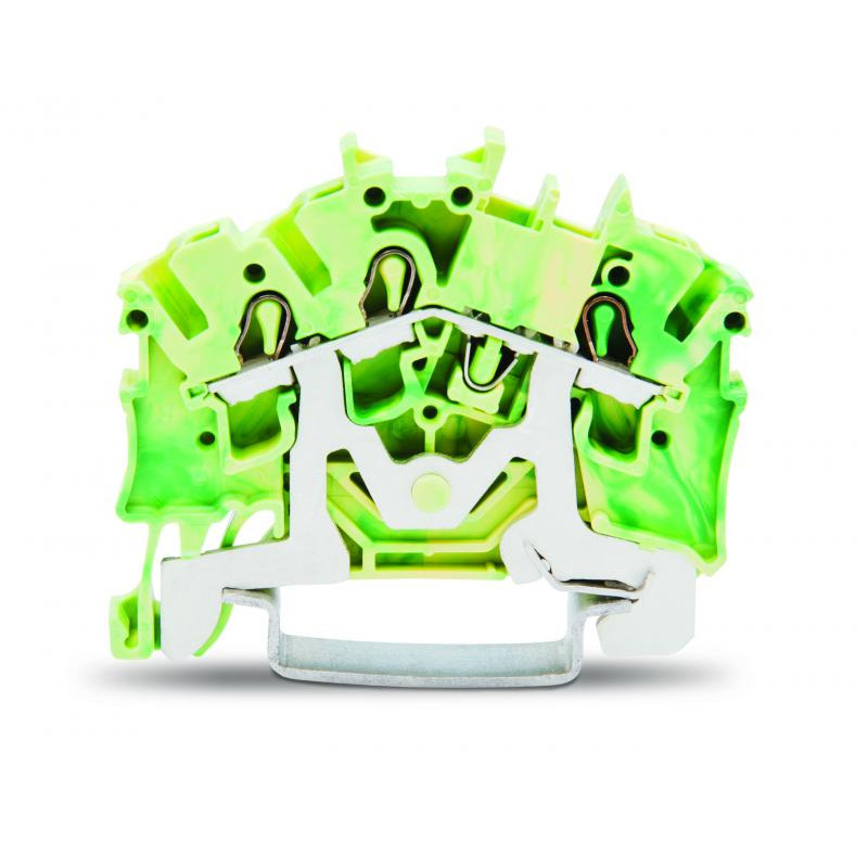 Emballage: 100Marque: WagoRéférence: 2002-6307EAN: 4044918964968Description: Borne de protection pour 3 conducteu vert-jaune