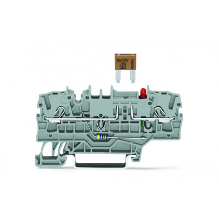 Emballage: 50 Marque: Wago Référence: 2002-1981/1000-413 EAN: 4050821089247 Description: Borne à fusible pour 2 conducteurs pour fusibles plats mini automobile, gris