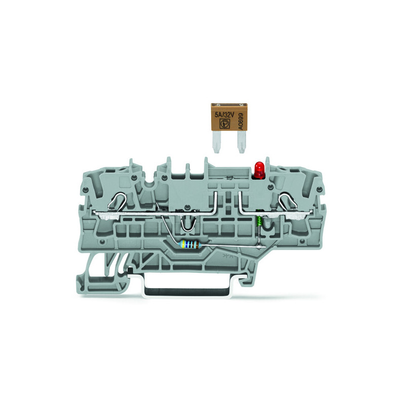 Emballage: 50 Marque: Wago Référence: 2002-1981/1000-414 EAN: 4050821089278 Description: Borne à fusible pour 2 conducteurs pour fusibles plats mini automobile, gris