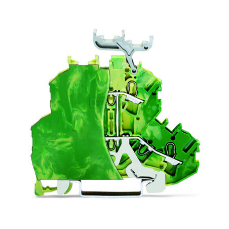 Description: Borne à deux étages Borne de protection pour 4 conducteu avec plaque d'extrémité, vert-jaune