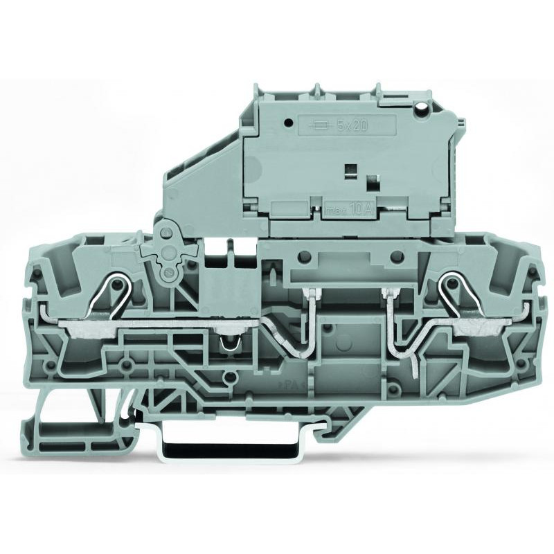 Borne à fusible pour 2 conducteurs avec porte-fusible pivotant, gris