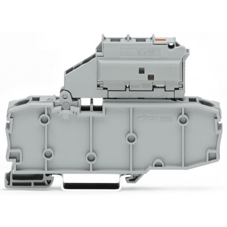 Description: Borne à fusible pour 2 conducteurs avec porte-fusible pivotant avec plaque d'extrémité, gris