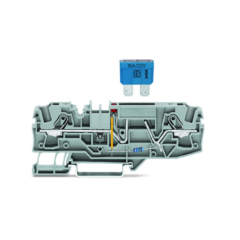 Emballage: 25 Marque: Wago Référence: 2006-1681/1000-434 EAN: 4045454789800 Description: Borne à fusible pour 2 conducteurs pour fusibles plats automobile, gris
