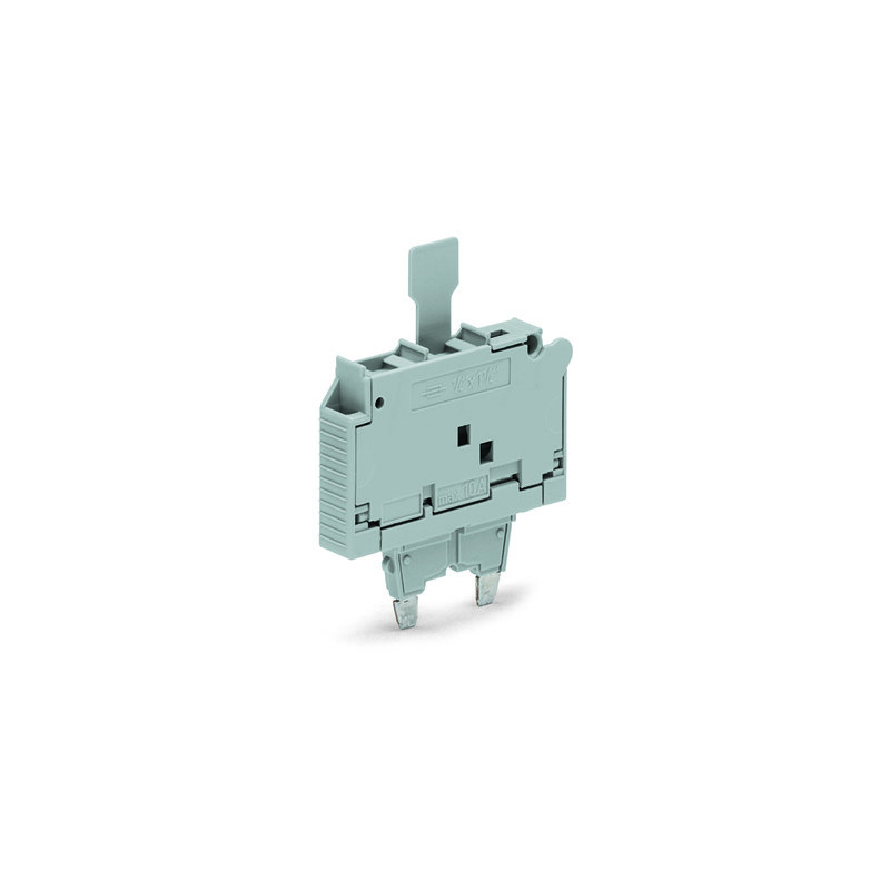 Emballage: 25 Marque: Wago Référence: 2006-931/1000-867 EAN: 4050821183525 Description: Fiche à fusible avec languette pour fusible type 1/4 x 1 1/4 mm, gris