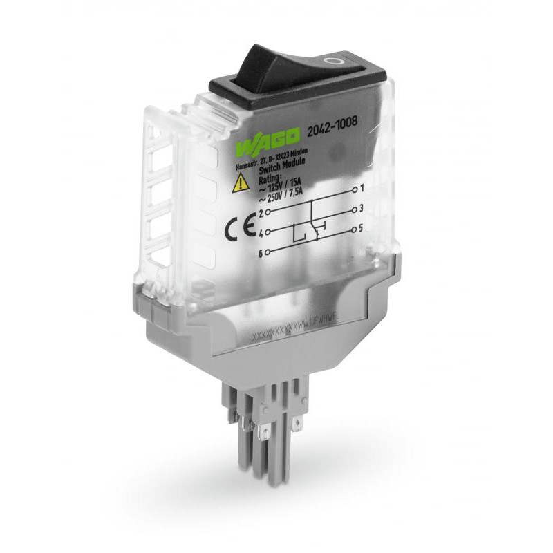 Emballage: 1Marque: WagoRéférence: 2042-1008EAN: 4055143772075Description: SWITCH-MOD CO 250VAC, translucide