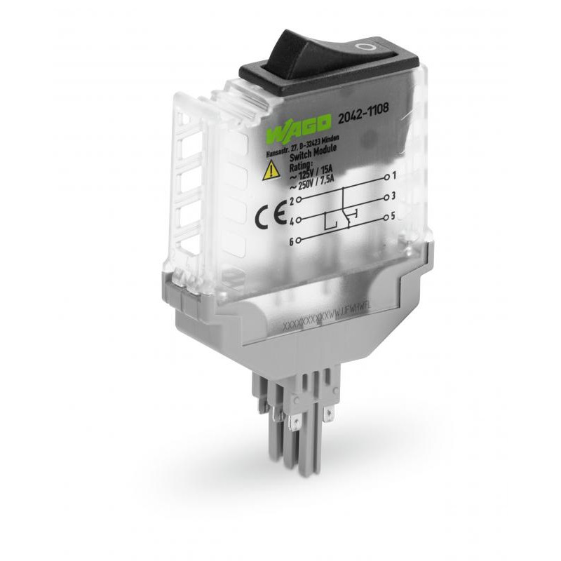 Emballage: 1Marque: WagoRéférence: 2042-1108EAN: 4055143883818Description: SWITCH-MOD CO-MOM 250VAC, translucide