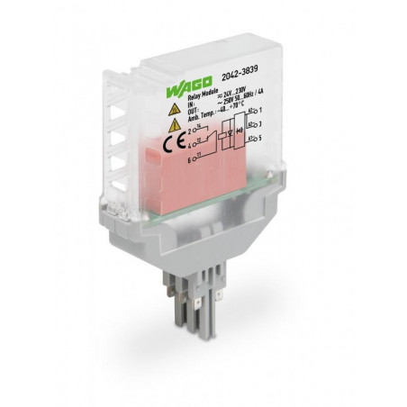Emballage: 4Marque: WagoRéférence: 2042-3839EAN: 4055143651943Description: REL AC/DC 24-230V