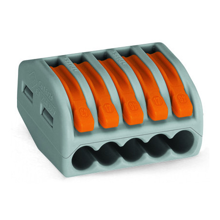 Emballage: 40 - 400 Marque: Wago Référence: 222-415 EAN: 4044918464956 Description: Borne pour boîte de dérivation CLASSIC Pour tous types de conducteurs, gris