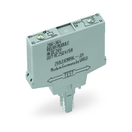 Emballage: 1 - 25Marque: WagoRéférence: 286-364EAN: 4045454524968Description: REL 24 V DC, gris