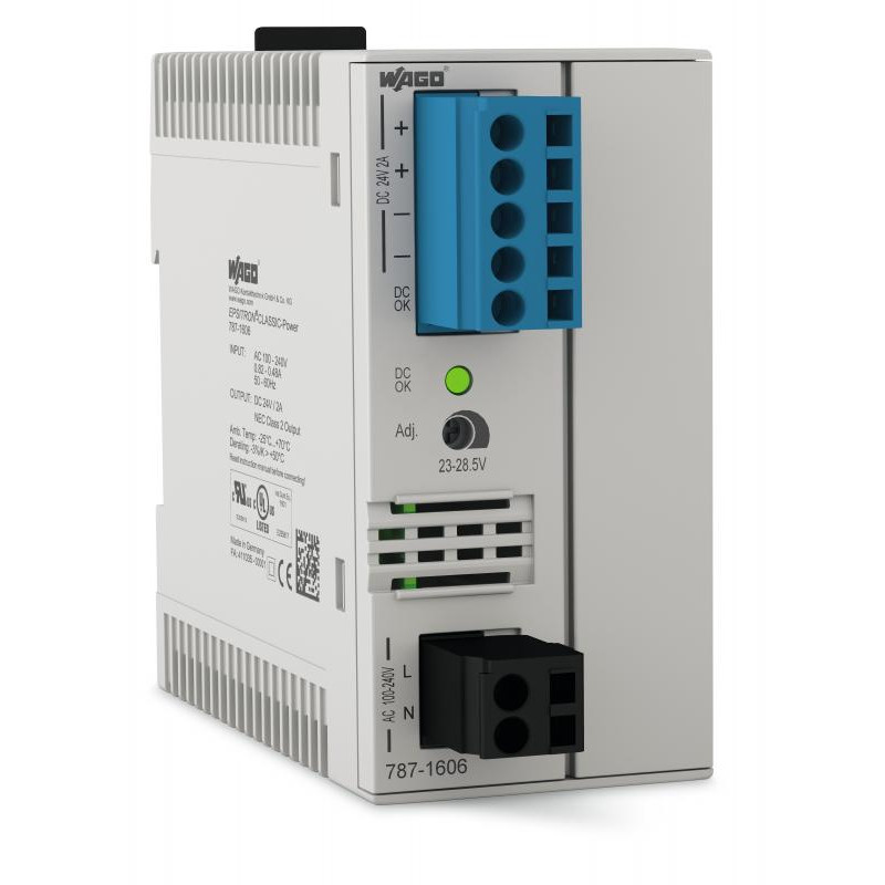 Emballage: 1Marque: WagoRéférence: 787-1606EAN: 4055143060431Description: SMPS Classic monoph.