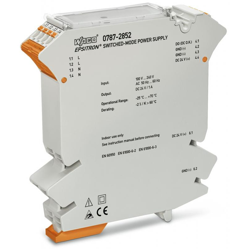 Emballage: 1Marque: WagoRéférence: 787-2852EAN: 4055143295529Description: SMPS monoph.