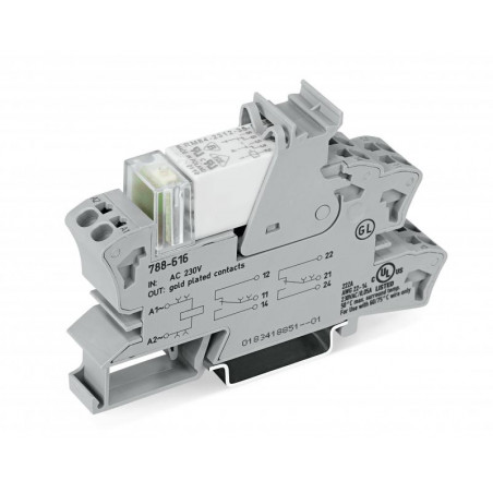 Emballage: 1 - 20Marque: WagoRéférence: 788-616EAN: 4045454484804Description: REL AC 230V, gris