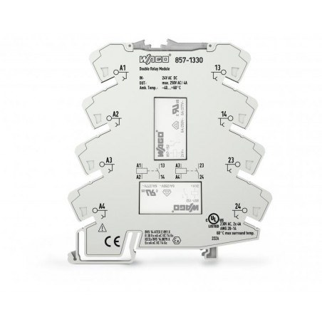 Emballage: 1 - 25Marque: WagoRéférence: 857-1330EAN: 4050821099796Description: REL 2x AC/DC 24V