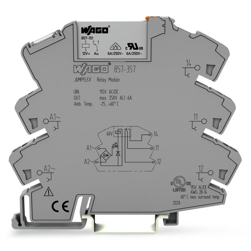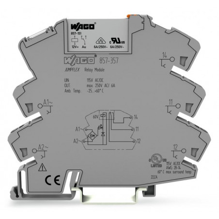 Emballage: 1 - 25Marque: WagoRéférence: 857-357EAN: 4055143656467Description: REL AC/DC 115V, gris