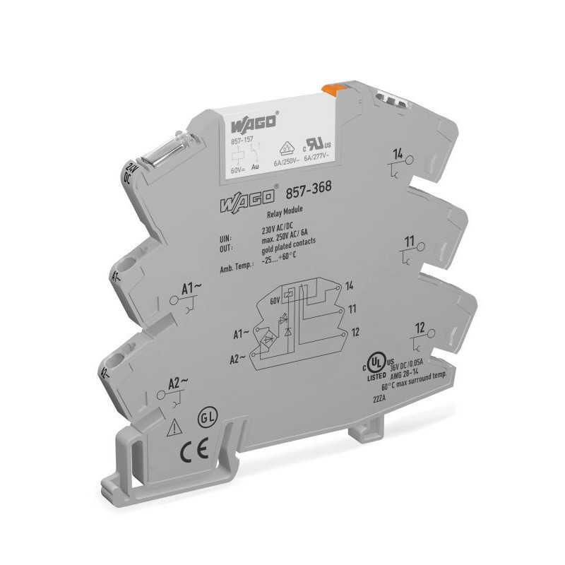 Emballage: 1 - 25Marque: WagoRéférence: 857-368EAN: 4045454673482Description: REL AC/DC 230V, gris
