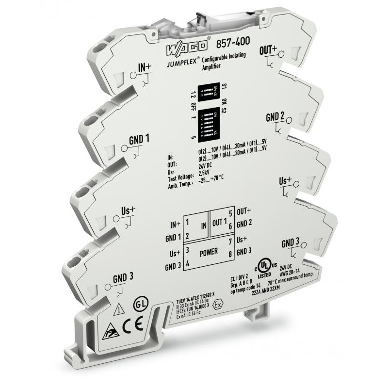 Emballage: 1Marque: WagoRéférence: 857-400EAN: 4045454471293Description: ISO-AMP UI UI