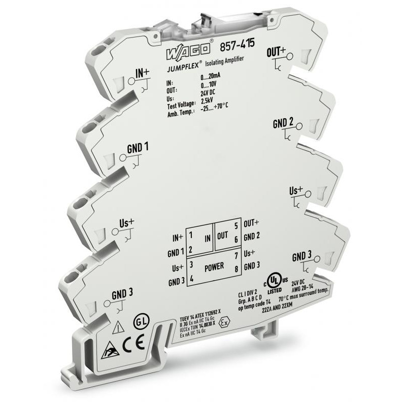 Emballage: 1Marque: WagoRéférence: 857-415EAN: 4045454609856Description: ISO-AMP I U