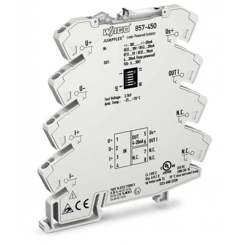 Emballage: 1Marque: WagoRéférence: 857-450EAN: 4045454828479Description: LOOP POWERED ISO-AMP UI (BIP) I