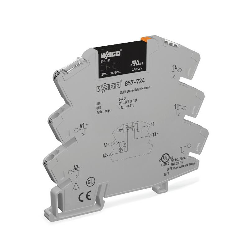 Emballage: 1 - 25Marque: WagoRéférence: 857-724EAN: 4045454835552Description: SSR 24 V DC, gris