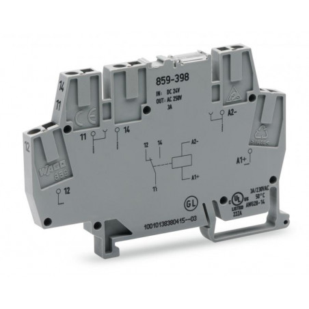 Emballage: 10Marque: WagoRéférence: 859-398EAN: 4055143777148Description: REL 24 V DC, gris