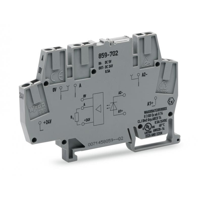 Emballage: 1Marque: WagoRéférence: 859-702EAN: 4055143604673Description: OPTO DC 5V, gris