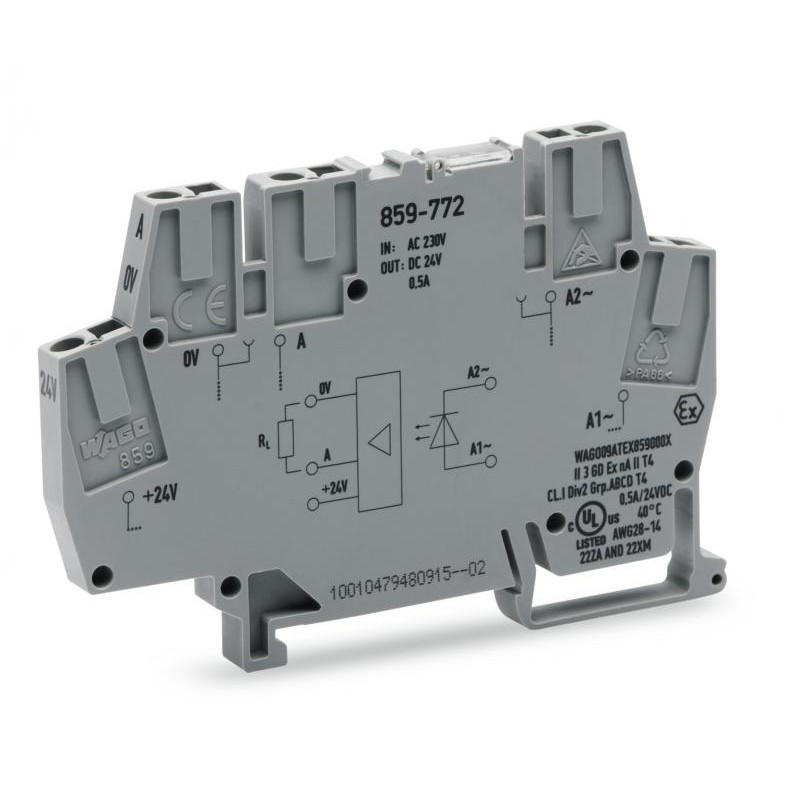 Emballage: 1Marque: WagoRéférence: 859-772EAN: 4055143606172Description: OPTO AC 230V, gris