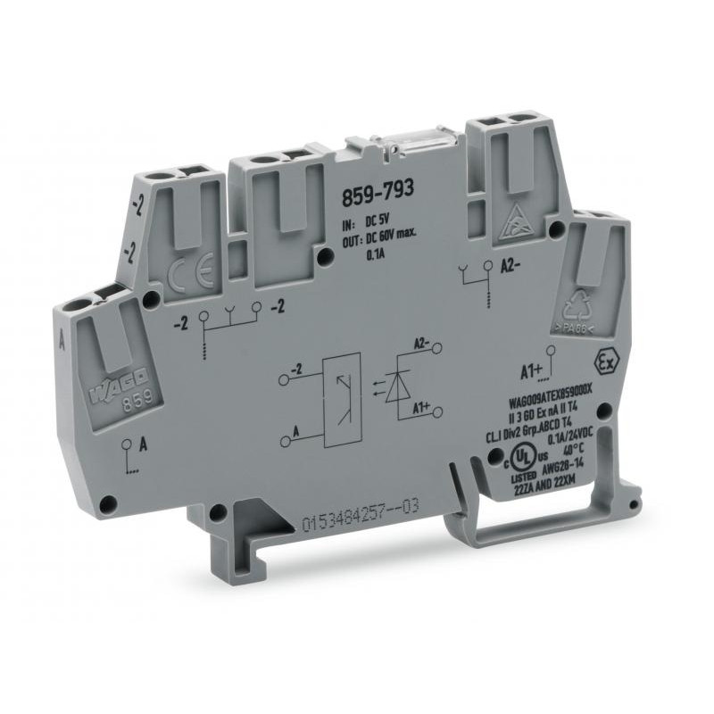 Emballage: 10Marque: WagoRéférence: 859-793EAN: 4055143606271Description: OPTO DC 5V, gris
