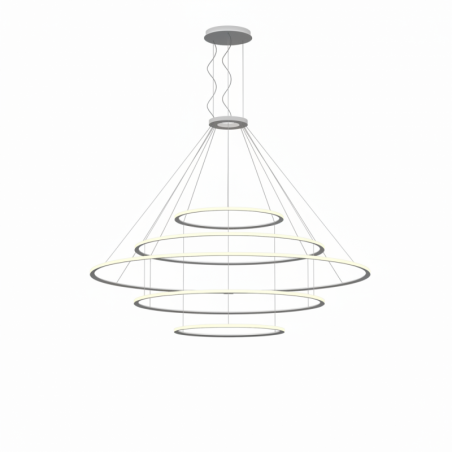 Description: Pendant Circular Inward 5 Rings (ø1200 ø2000 ø3000 ø2000 ø1200) LED 575W 3000K 0-10V Black 32310lm