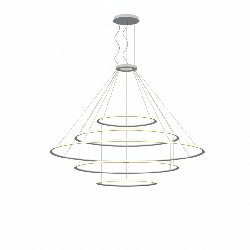 Description: Pendant Circular Inward 5 Rings (ø600 ø1200 ø2000 ø1200 ø600) LED 340W 2700K DALI Black 18325lm