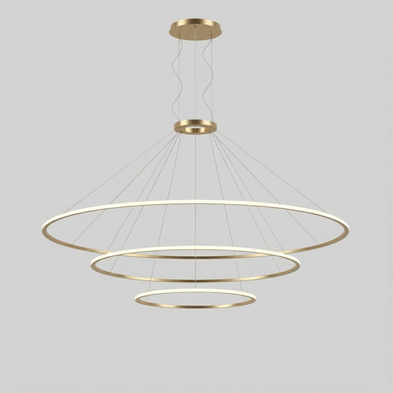 Description: Pendant Circular Inward 3 Rings (ø3000 ø2000 ø1200) LED 381W 4000K 0-10V Gold 22960lm
