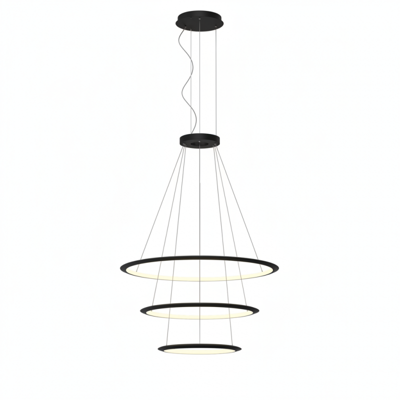 Description: Pendant Circular Inward 3 Rings (ø1200 ø900 ø600) LED 159W 2700K 0-10V Black 8464lm