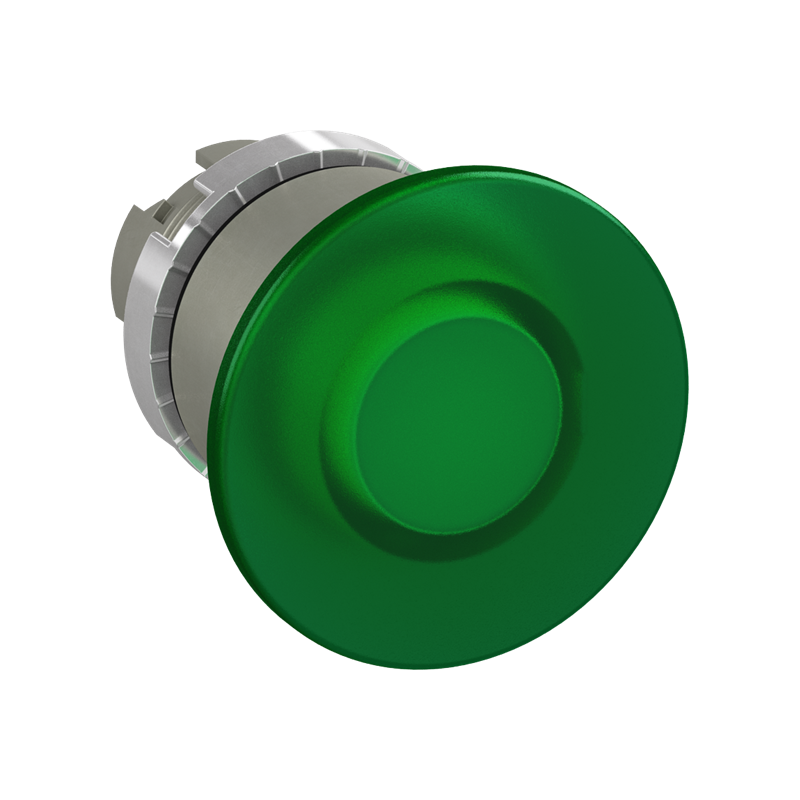Description: BOUTON POUSSOIR COUP DE POING, LUMINEUX Ø40MM MOMENTANÉE VERT