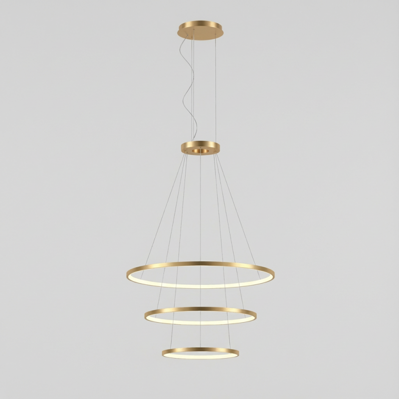 Description: Pendant Circular Outward 3 Rings (ø1200 ø900 ø600) LED 159W 3000K DALI Gold 11835lm