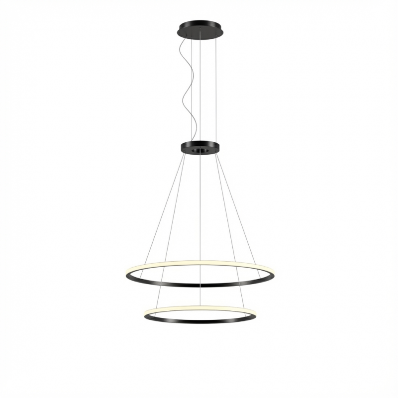 Description: Pendant Circular Outward 2 Rings (ø1200 ø900) LED 124W 2700K DALI-2 Black 7758lm