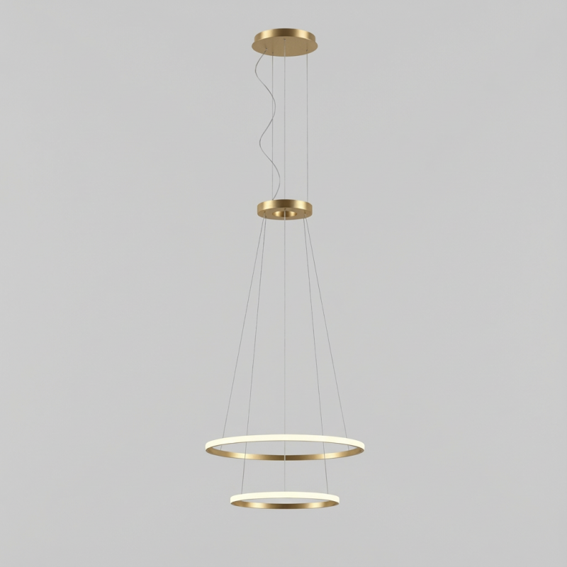 Description: Pendant Circular Outward 2 Rings (ø900 ø600) LED 91W 2700K 0-10V Gold 5678lm