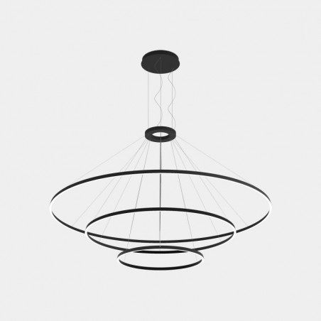 Description: Suspension Circular Downward 3 Rings (ø3000 ø2000 ø1200) LED 320W Blanc chaud - 3 000 K 0-10V Noir 24709lm
