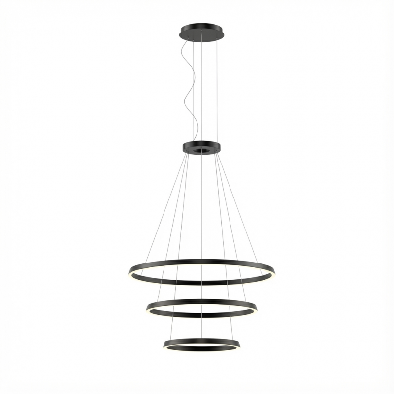 Description: Pendant Circular Downward 3 Rings (ø1200 ø900 ø600) LED 132W 2700K DALI Black 8700lm