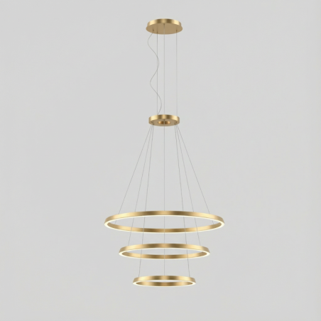 Description: Pendant Circular Downward 3 Rings (ø1200 ø900 ø600) LED 132W 3000K DALI Gold 9457lm