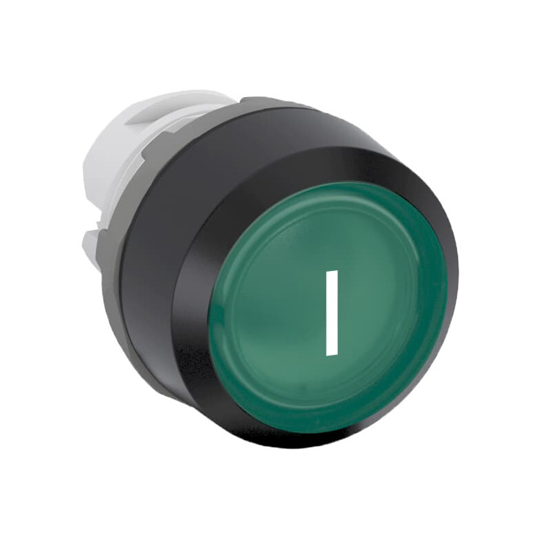 BOUTTON POUSSOIR PLAT SÉRIE MODULAIRE IMPULSION, LUMINEUX, VERT, MARQUÉ 'I'