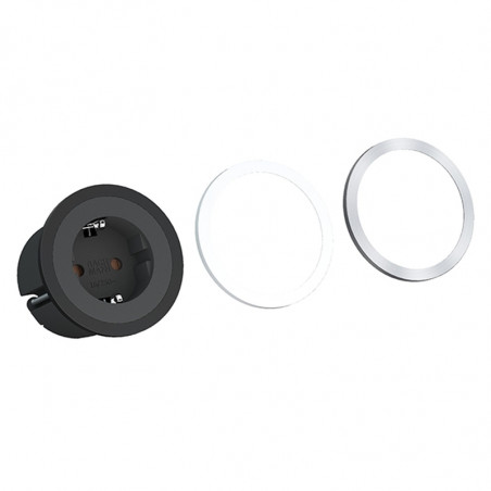 PIX (1X SCHUKO) AVEC 2 ANNEAUX NOIR/BLANC + 0,2 MTR CABLE