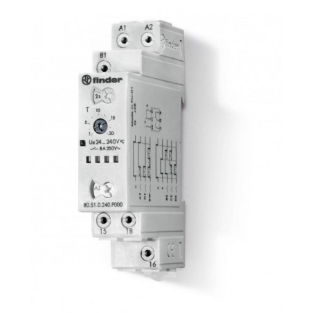 Tempo 6 fonctions multitension 1RT 16A 24-240V AC/DC, de 0,1s à 24h, Push-in